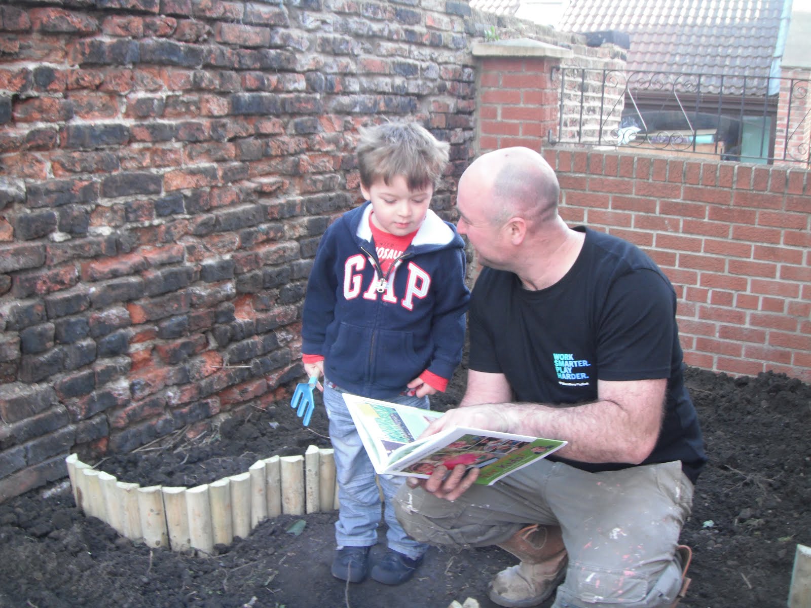 Here is my husband with our son, checking where to plant!